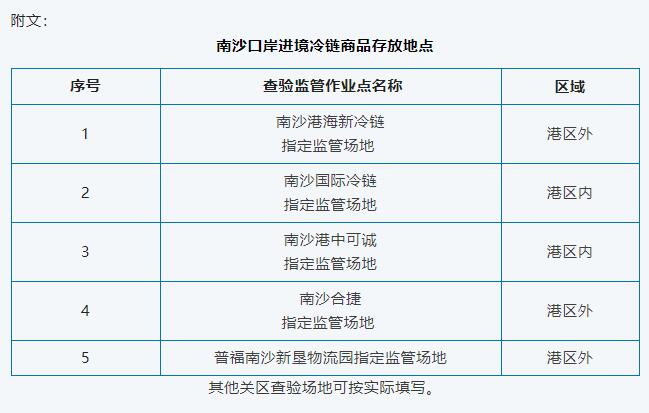 三、南沙國(guó)際冷鏈指定監(jiān)管場(chǎng)地計(jì)劃于10月25日開(kāi)展冷鏈查驗(yàn)作業(yè),但目前暫不具備凍肉和冰鮮水產(chǎn)品指定監(jiān)管場(chǎng)地資質(zhì),因此進(jìn)口這兩種冷鏈產(chǎn)品的企業(yè)在填寫(xiě)“貨物存放地點(diǎn)”時(shí),不得填寫(xiě)南沙國(guó)際冷鏈指定監(jiān)管場(chǎng)地作為“貨物存放地點(diǎn)”,其他冷鏈產(chǎn)品按第二條要求執(zhí)行。