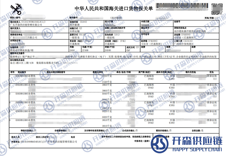 一、巴基斯坦凍帶魚進(jìn)口報(bào)關(guān)代理案例詳情