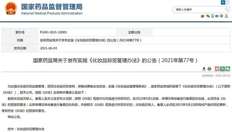 2022年5月開始,國家藥品監督管理局關于《化妝品標簽管理辦法》(2021年第77號)將正式施行,關于進口化妝品應注意以下內容: