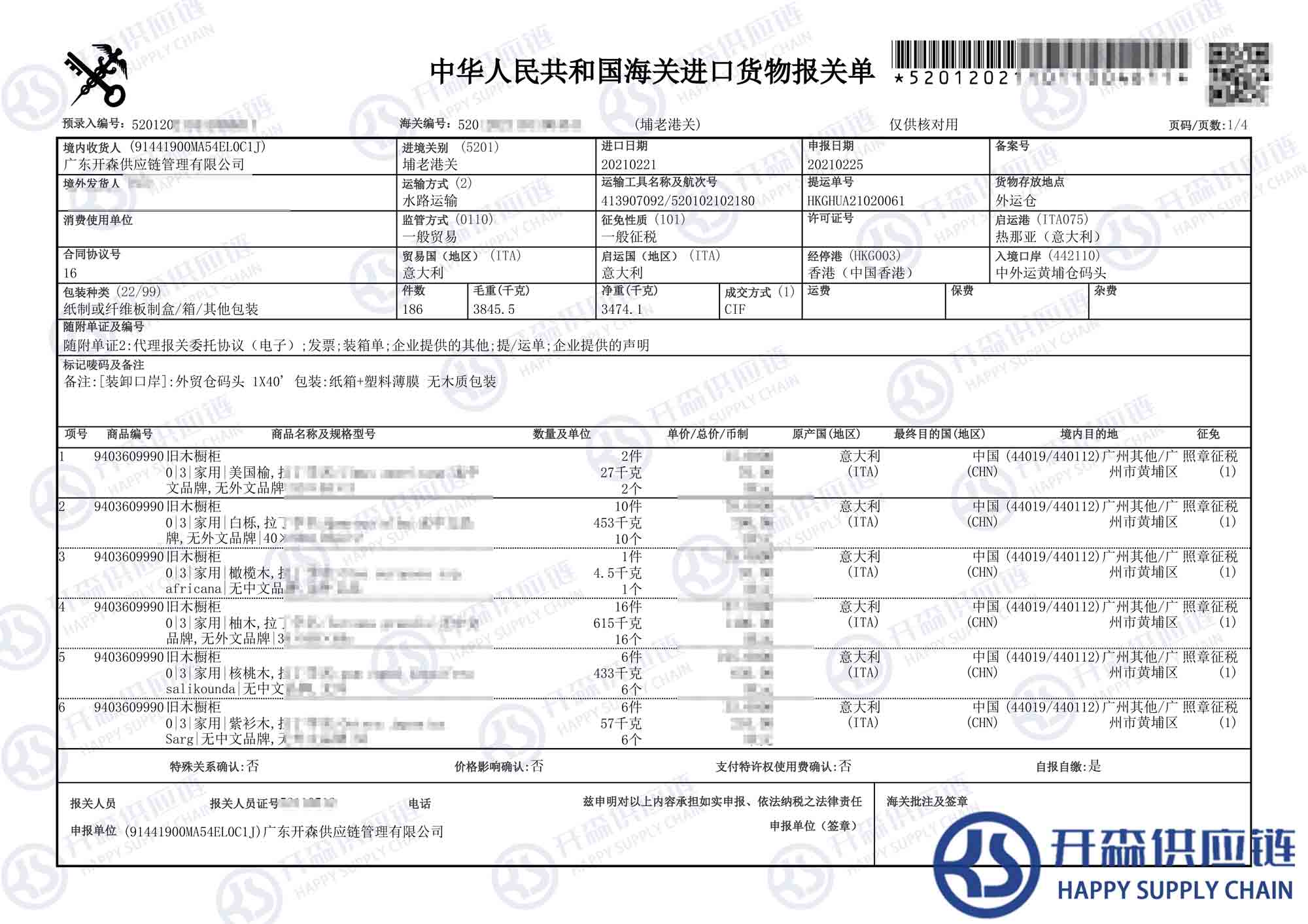 意大利舊木櫥柜家具進(jìn)口報關(guān)代理案例【進(jìn)口案例】
