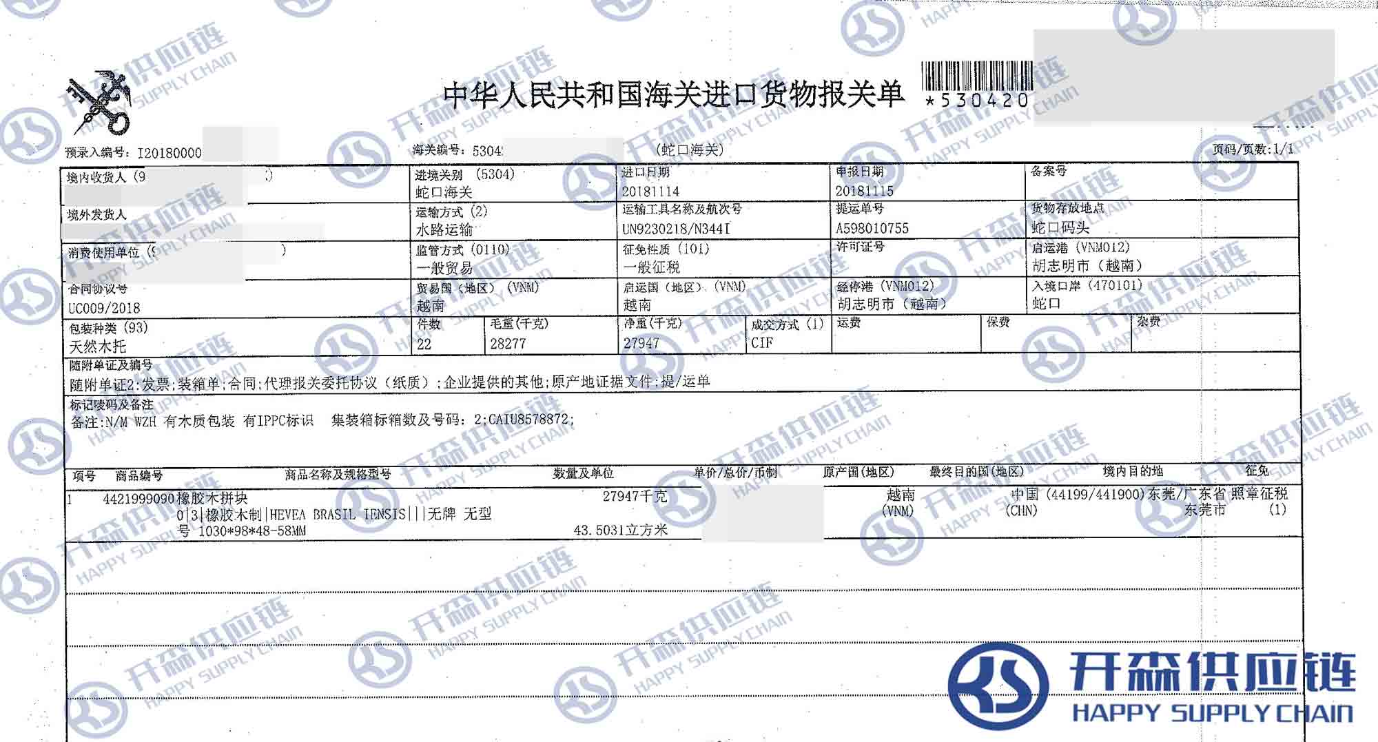 【導讀】您正在閱讀的是關于越南橡膠木拼塊家具進口報關代理服務【經典案例】的內容,本文由開森家具進口報關代理小編整理編寫;