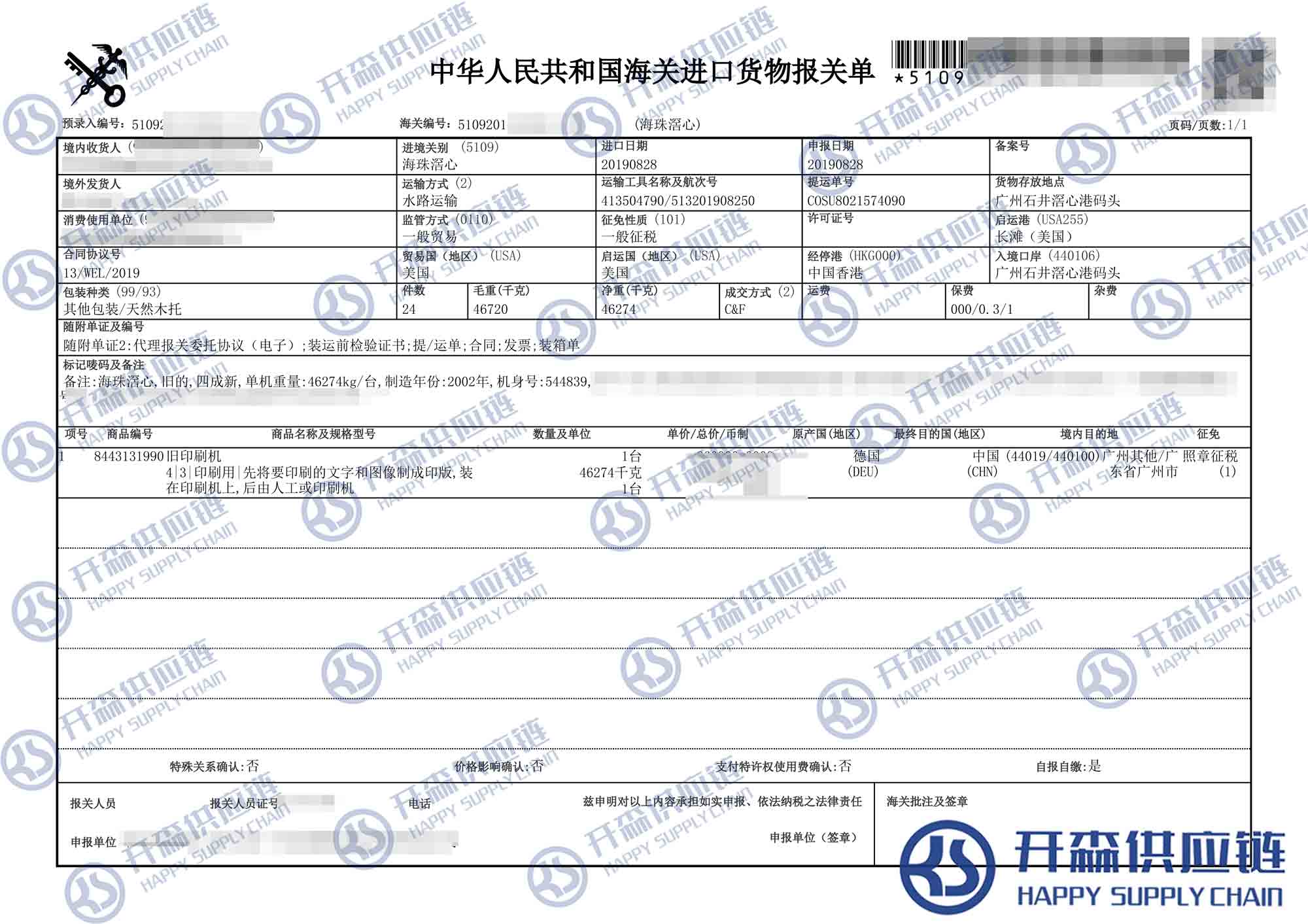 【進(jìn)口案例】廣州港二手印刷機(jī)進(jìn)口報(bào)關(guān)代理服務(wù)