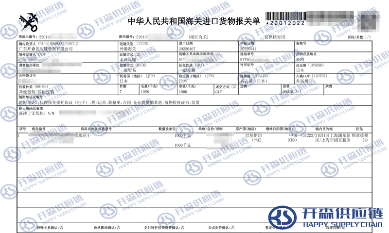 【本文結語】 上述就是日本玫瑰花干進口報關清關代理服務【經典案例】的全部內容,希望能對您有所幫助,如有普貨進口報關案例上任何疑問及問題可隨時在線聯系我們或撥打 18002611553,開森供應鏈擁有豐富的普貨進口報關案例操作經驗及案例,10余年進口經驗為您所用,各類進口疑難都能為您一一解答及協助快速處理解決!